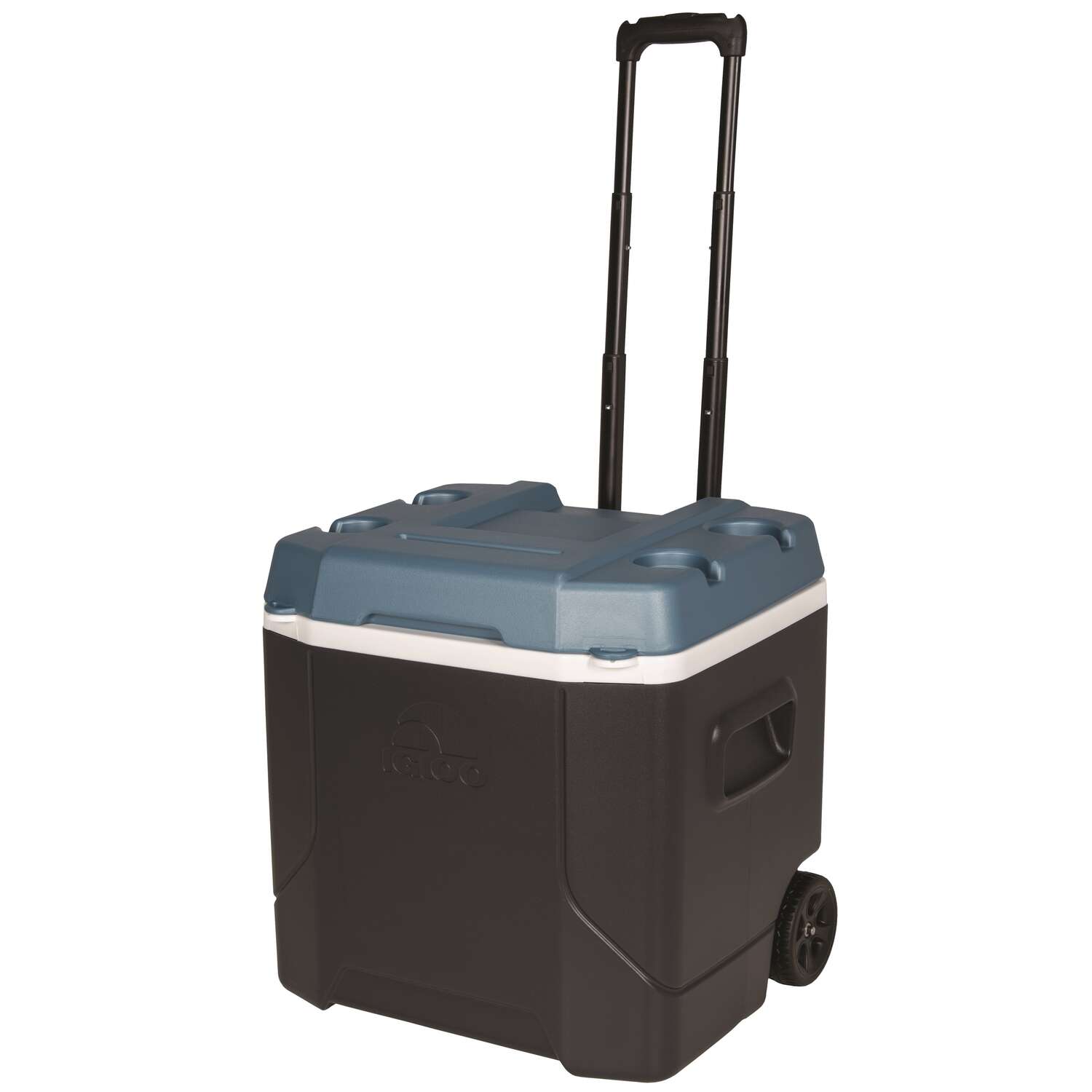Ultratherm insulation in body and lid keeps contents cold. Wheeled for easy transport and locking telescoping handle enables cooler to be pushed or pulled. Telescoping handle with gear hangers to hold totes, bags & more. Cool riser technology elevated design improves cooling performance. Integrated tie down loops allow extra gear to be tied to the top of the cooler or locked for security. Media slot molded into lid holds cell phone or notebook upright for hands free viewing. Four self-draining cup holders molded into lid. Triple snap leak resistant drain plug allows easy draining of melted ice. Internal "shelf-ledge" at wheel well helps make sloped space inside cooler more useable for setting drinks or storing condiments. Molded-in side handles for easy loading / unloading.