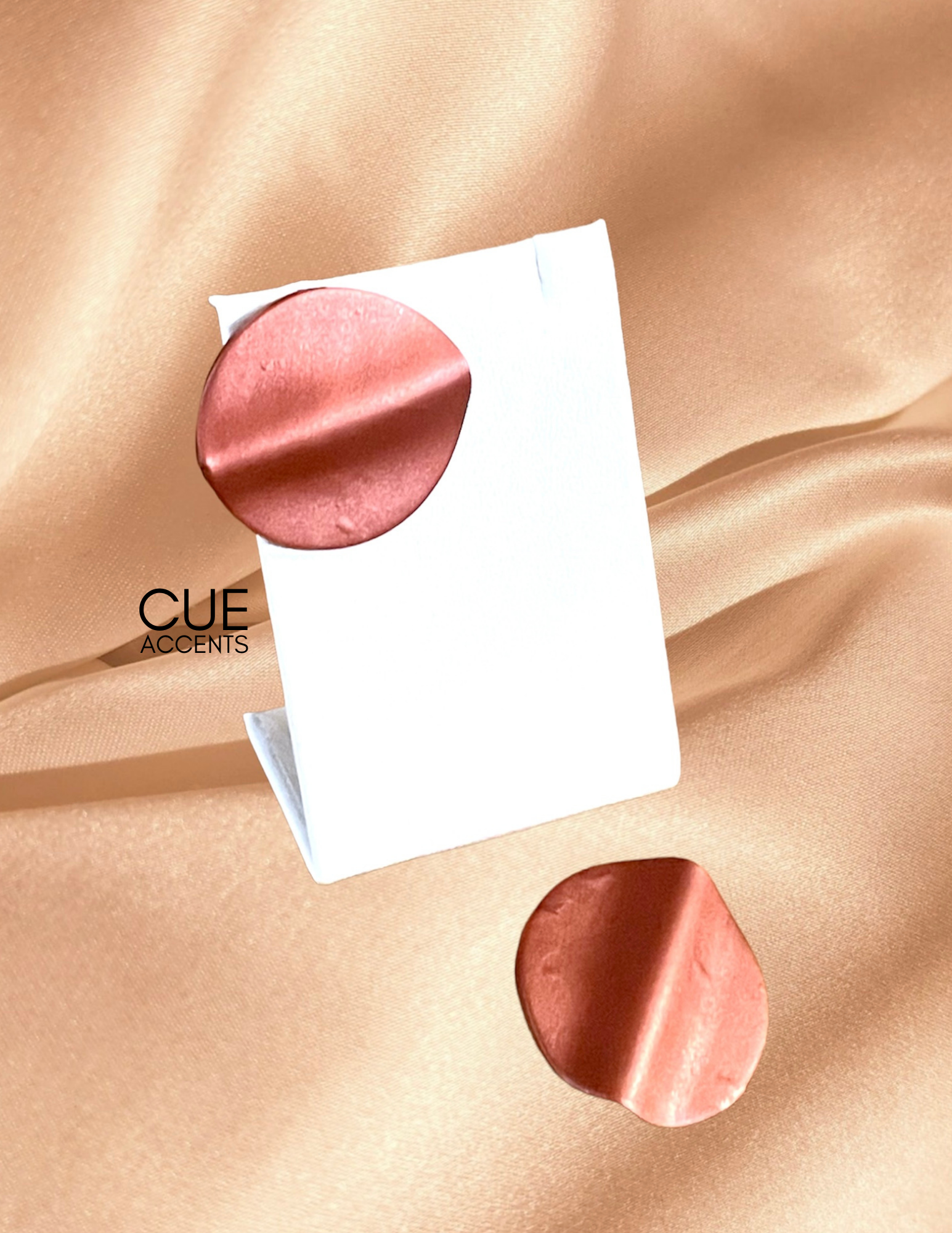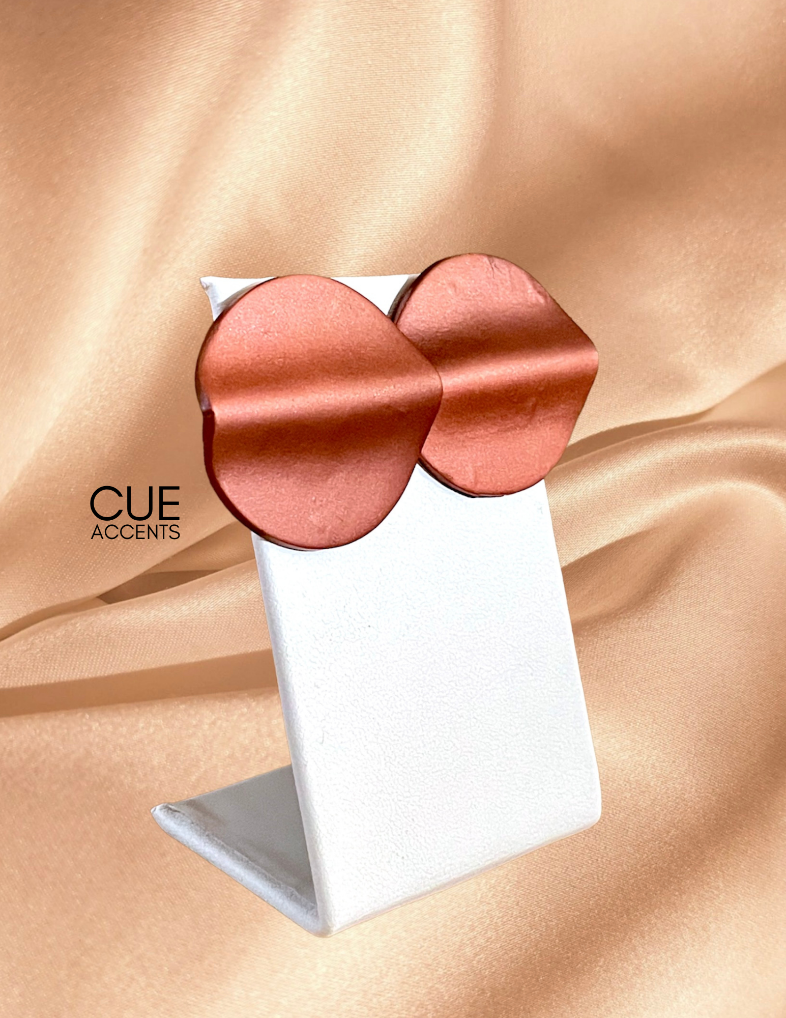 Ride “The Wave” now for a unique twist on circular stud earrings. This piece has a 3D effect, using “folded” bronze colored polymer clay and hypoallergenic stainless steel you’re in for a lightweight, skin safe, stylish experience. Ride the wave of earthy colored bronze dunes, reminiscent to a structured water wave. Join “The Wave” today! Take the cue. IG: @CueAccents Link: linktr.ee/cueaccents