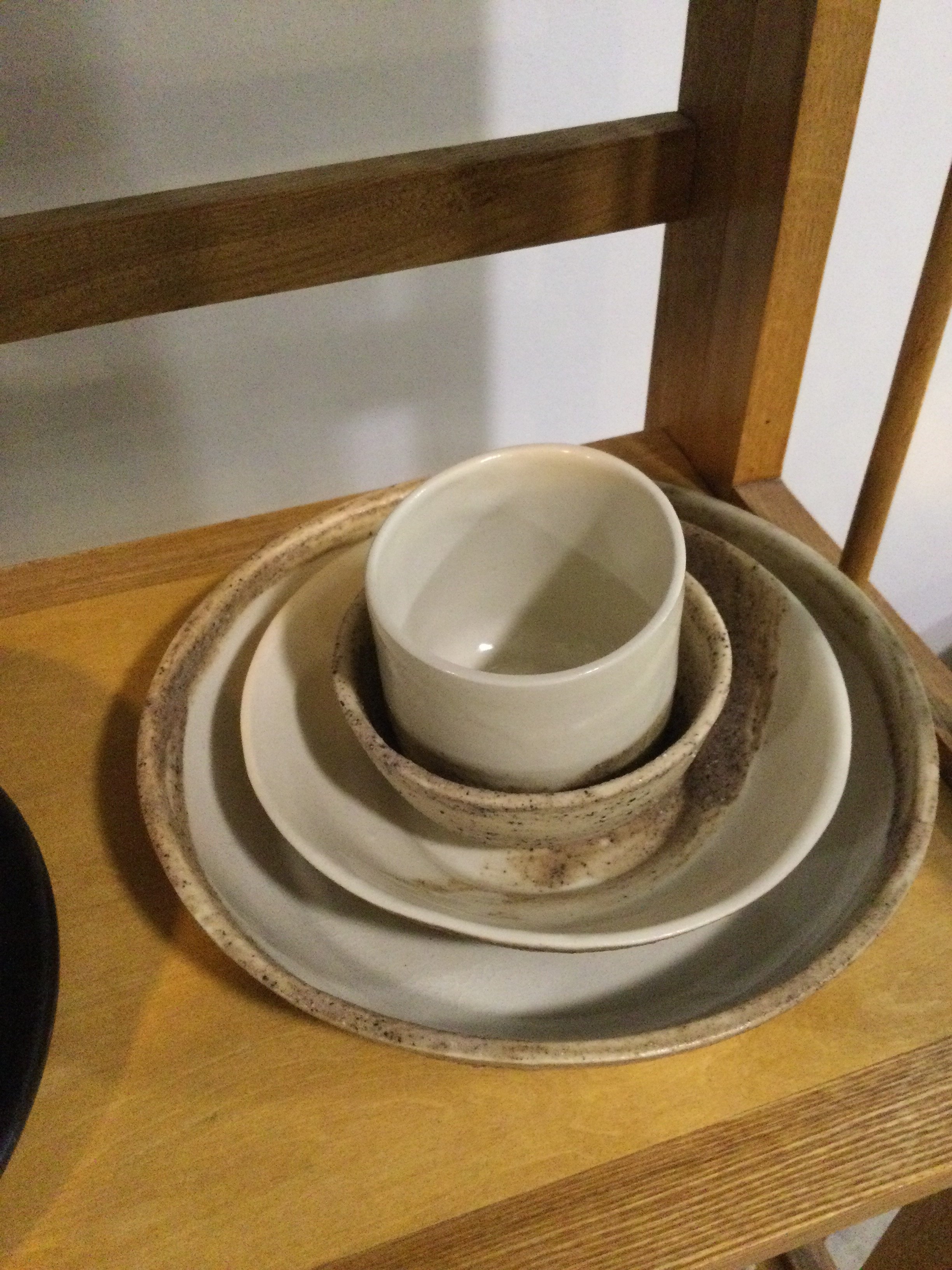 Inspired by a juxtaposition of place and objecthood in ceramics and their shared materiality, Amelia Black’s collection of nesting bowls are minimally decorated with limited edition glazes. Formulated from gifts of earth, each glaze has been developed in her Brooklyn studio using soil sourced from 42 locations worldwide. The unique properties of each glaze is indicative of the distinct properties of that place and represents a relationship to someone there. Every item is handmade in white stoneware with slight variations in size and finish, the collection is food safe and made for everyday use. This 4 piece setting includes: One 7" diameter dinner bowl One 5 1/2" diameter salad bowl One 4" diameter tea bowl One 3" diameter cup