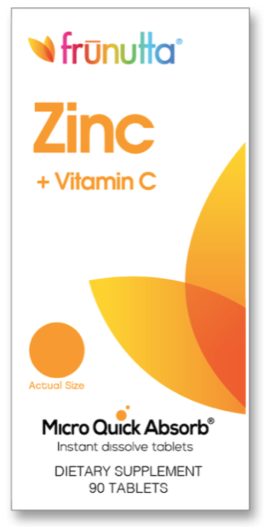 Frunutta Zinc + Vitamin C sublingual: For Immune System Health & Faster Healing* Zinc + Vitamin C aids immunity*, reduces the risk of age-related eye diseases* and helps wounds heal faster* It also helps with the absorption of plant-based iron, and zinc is essential for the body to make DNA and for cell division.* Vitamin c 15 mg (as acsorbic acid), zinc 5 mg (as zinc oxide and zinc gluconate), stevia leaf extract (as rebaudioside a), lactose (milk), natural cherry flavor and acacia gum.