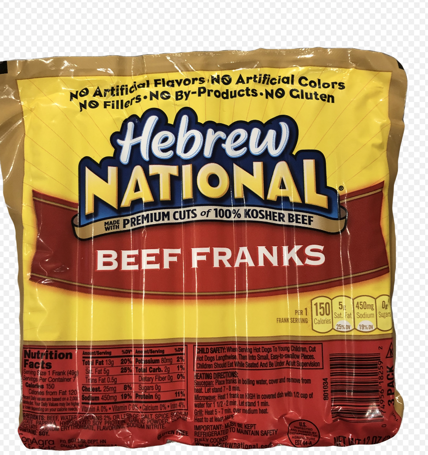 Hunger does not stand a chance with Hebrew National Franks. Only premium cuts make the cut of our always 100% Kosher beef products from the front half of the cow. This 36 Ounce package contains three packs, each with 7 Hebrew National Beef Franks. Treat your family to some much-needed excitement with a hot dog you can trust. Celebrate confidently with our classic beef franks made with premium cuts 100% Kosher beef providing premium, high quality taste, every time. Unquestionable quality you can taste, enjoy this American classic as a snack or for a meal. Perfect for family BBQs, tailgates, and any summer time festivities— with 150 calories per serving; contains soy. The most trustworthy hot dog you can buy, we never compromise our strict standards of quality or taste because we strive for perfection. You taste it. Hebrew National Franks can be microwaved, heated via skillet, or grilled, and are ready in just minutes. IN STORE ONLY Gluten Free Egg Free Fish Free Milk Free Peanut Free Shellfish Free Treenut Free Wheat Free