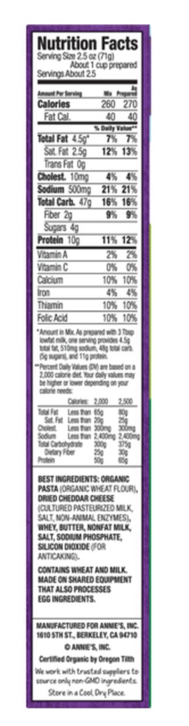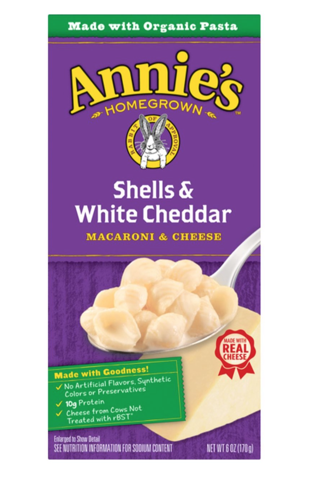 Annie's Organic Shells White Cheddar MAC & CHEESE: Our gluten free shells macaroni & cheese is made with organic pasta with a creamy real cheese and Annie's shell shape pasta. REAL INGREDIENTS: No artificial flavors, synthetic colors, or preservatives. MADE WITH ORGANIC PASTA: Made with goodness NON-GMO: We work with trusted suppliers to source only non-GMO ingredients. BOX CONTAINS: 1 box, 6 oz Made with 100% Real Cheese Made With Rice Pasta