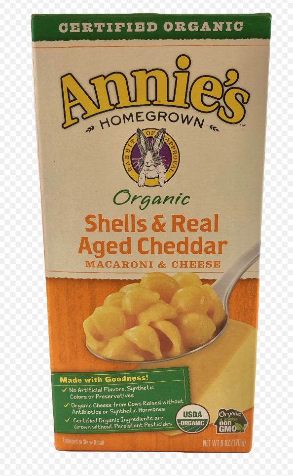 Annie's Mac & Cheese- Shells and Real Aged Cheese is for parents who want organic and kids who want orange. Modeled after our original Shells & Real Aged Cheddar, Organic Cheddar Mac (as we call it) is made with certified organic pasta and certified organic Real Aged Cheddar cheese. We color the cheese with annatto, a natural coloring used for centuries to make foods like butter and mustard colored naturally. Certified Organic Made with goodness; No artificial flavors, synthetic colors, or preservatives. We work with trusted suppliers to source only non-GMO ingredients. Organic cheese from cows raised without antibiotics or synthetic hormones. Certified organic. Ingredients are grown without persistent pesticides.
